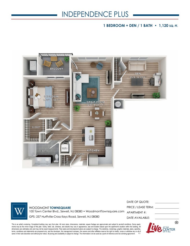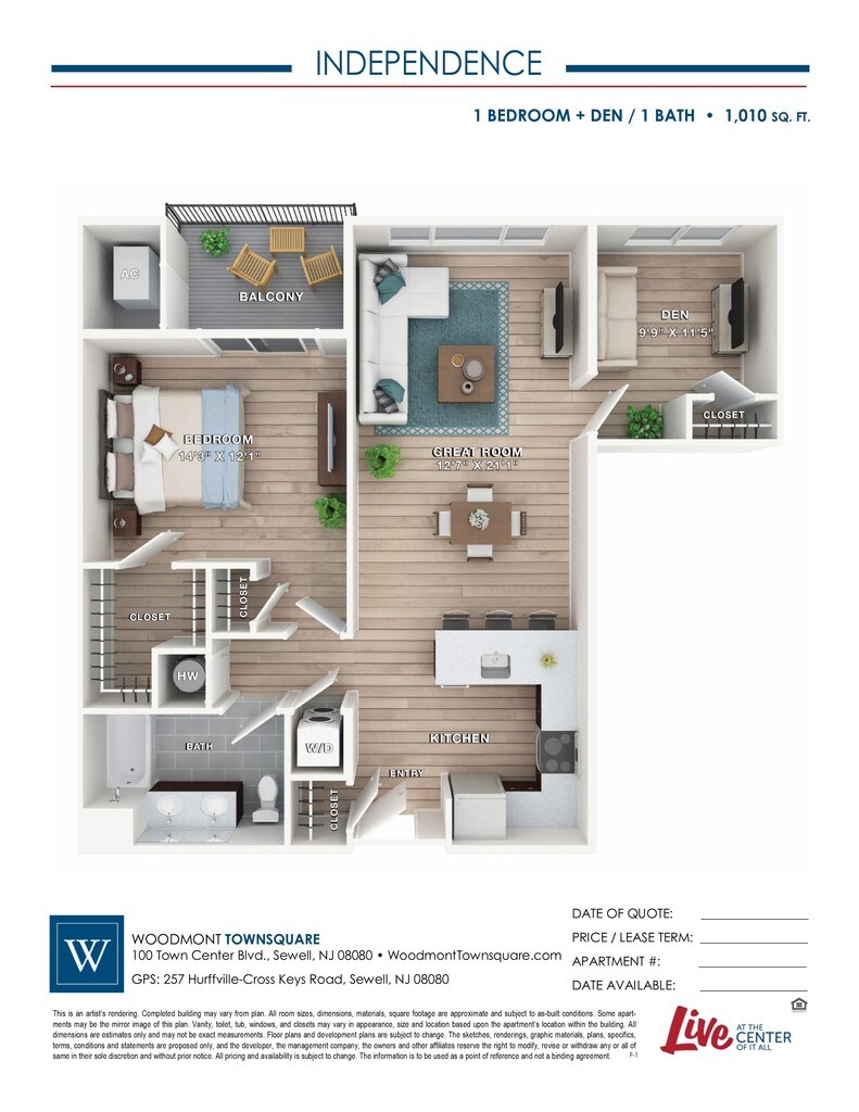 Modelo de apartamento: IndependenceLlame para Precios1 Dormitorio, 1 Baño, 1010 sq ftNo Disponible![]()