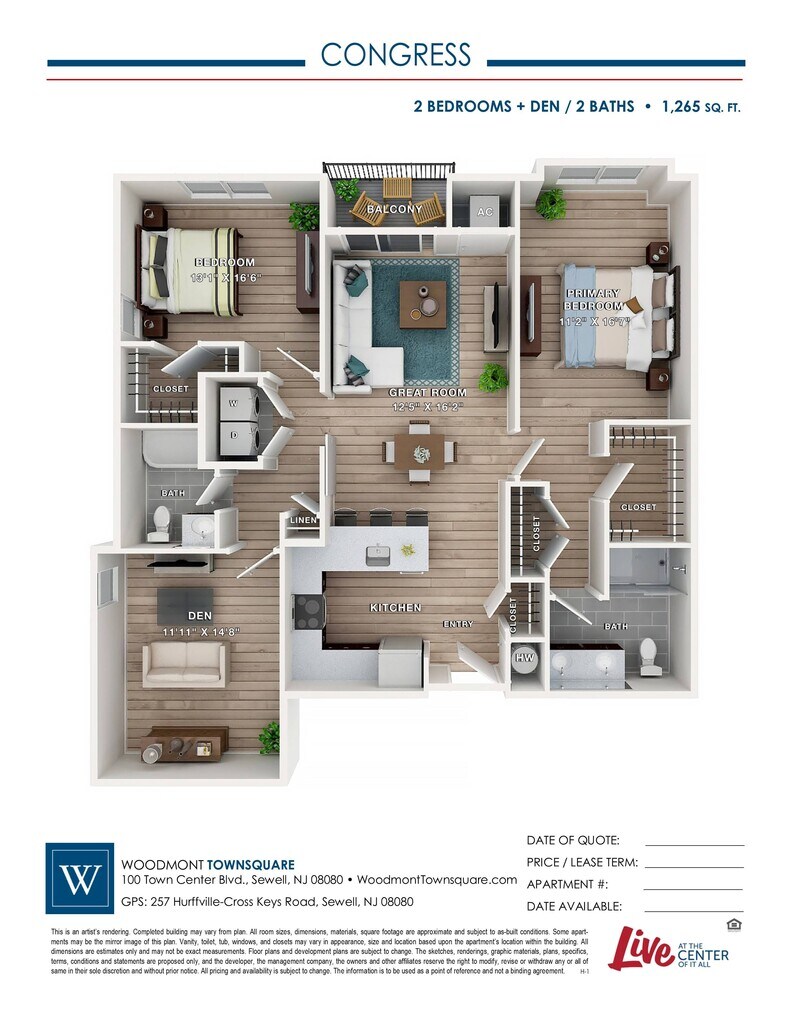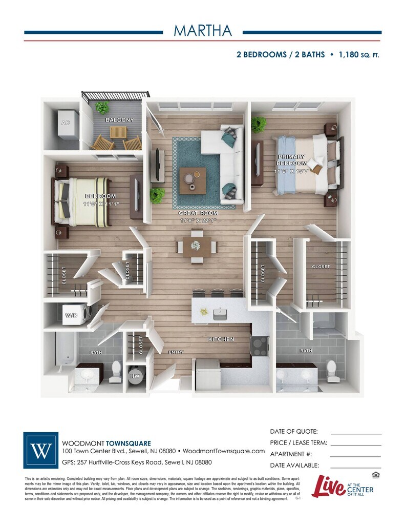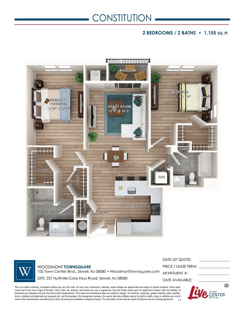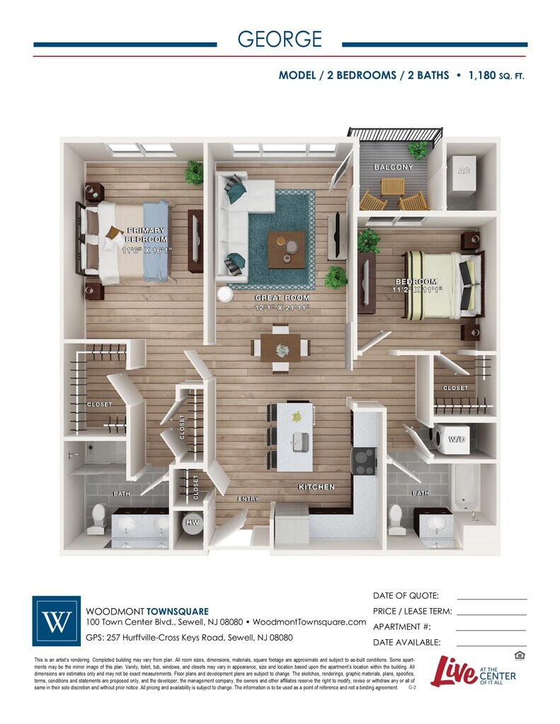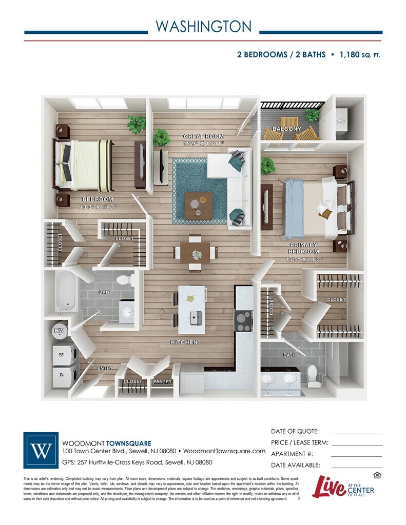 ¡Ofertas especiales de mudanza disponibles! Adopta un estilo de vida que combina el estilo de vida urbano con la belleza de los suburbios. Convenientemente ubicado en el nuevo y emocionante Washington Square Town Center, este innovador complejo de apartamentos destaca la posibilidad de caminar entre viviendas sofisticadas, tiendas minoristas, tiendas y servicios. Experimenta la vida contemporánea en Woodmont Townsquare con una elegante casa club, apartamentos exclusivos de 1 y 2 habitaciones y fabulosos acabados y características que incluyen cocinas elegantes con encimeras de cuarzo, electrodomésticos de acero inoxidable de bajo consumo, impresionantes techos de 9 ', vestidores espaciosos y hermosos toques neutros de color. Disfruta la relajación, comodidad y el relajado estilo de vida en nuestros apartamentos de Washington Township. Las comodidades estilo centro turístico son un lujo cotidiano, que muestran una espectacular piscina, una terraza con parrilla, un salón para residentes, un gimnasio y mucho más. Diseñado para complementar cualquier estilo de vida, el vecindario peatonal de Woodmont Townsquare es donde puedes tomar una taza de café, pasear a tu perro o simplemente mezclarte con tus vecinos. Esta excelente ubicación en el condado de Gloucester ofrece fácil acceso a Filadelfia, las principales autopistas y destinos populares del sur de Jersey. Con el ajetreado estilo de vida de hoy, nos importa dónde vives y cómo vives. Te invitamos a VIVIR EN EL CENTRO DE TODO.