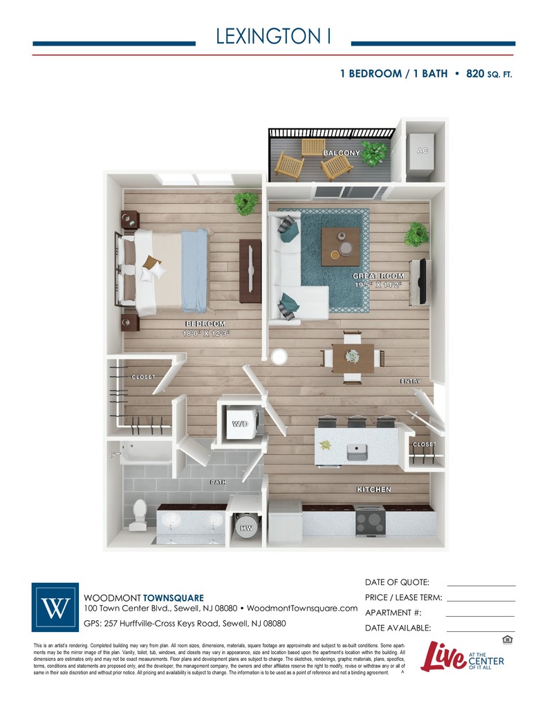 Modelo de apartamento: Lexington ILlame para Precios1 Dormitorio, 1 Baño, 820 sq ftNo Disponible![]()