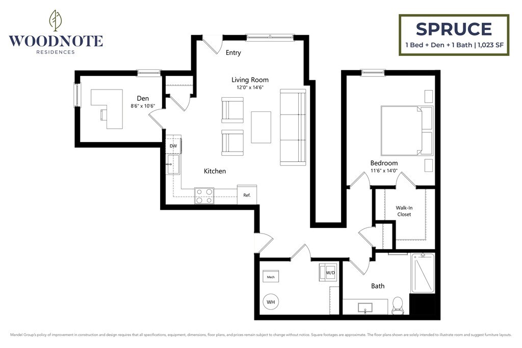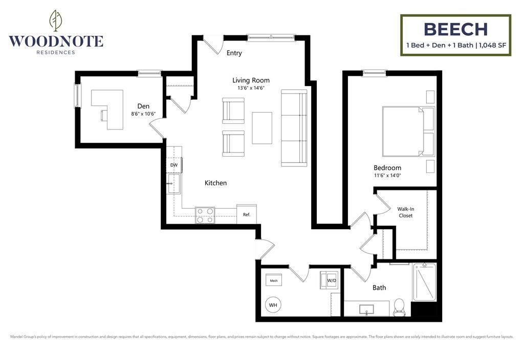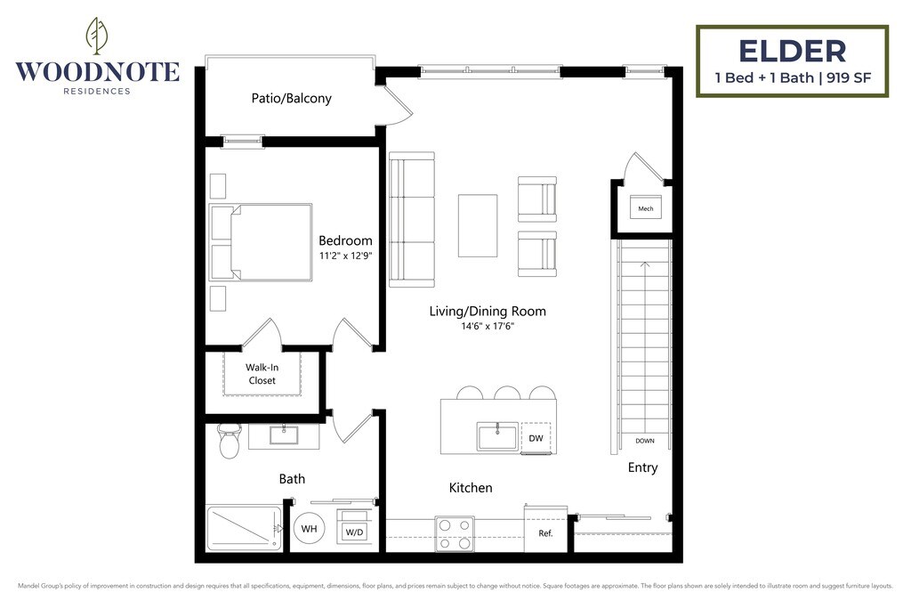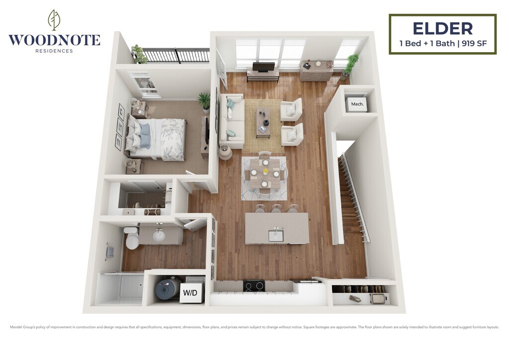 Modelo de apartamento: Elder$1,7651 Dormitorio, 1 Baño, 919 sq ftNo Disponible![]()