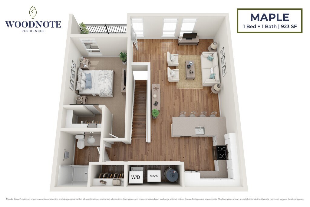 1 Dormitorio, 1 Baño, 789 pies²Galería del Modelo