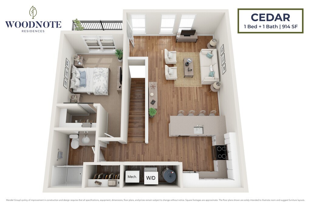 Modelo de apartamento: CedarDesde $1,6151 Dormitorio, 1 Baño, 914 sq ftNo Disponible![]()