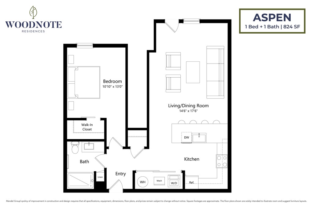 Modelo de apartamento: AspenDesde $1,6251 Dormitorio, 1 Baño, 824 sq ftDisponible November 13, 2025![]()