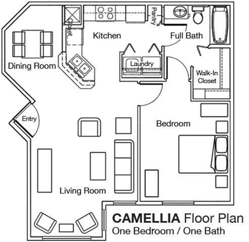 1 Bed - 1 Bath - Plano 1 2 Dormitorios