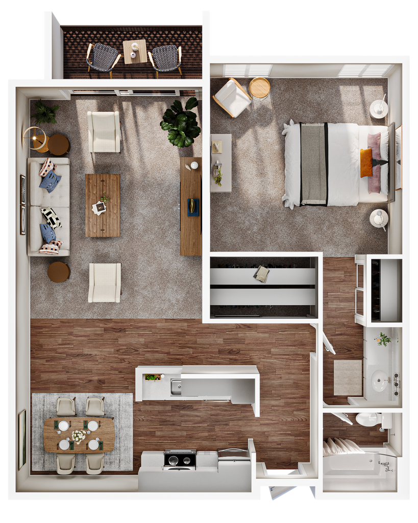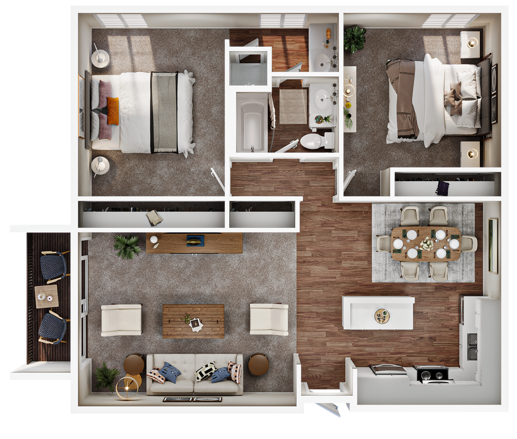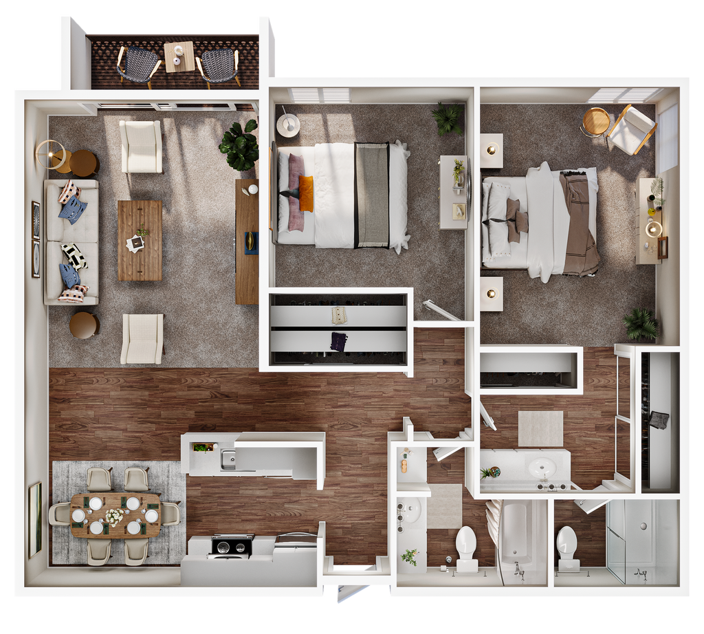 2 Bed, 1 Bath - Plano 2 Bed, 2 Bath