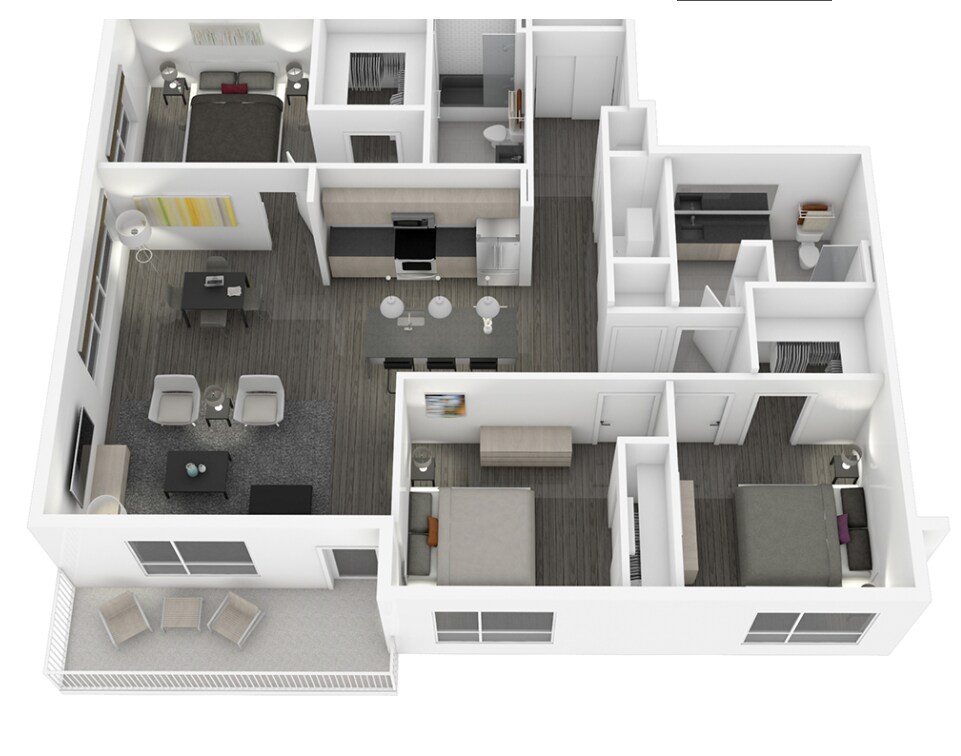 Modelo de apartamento: 2CDesde $2,9952 Dormitorios, 2 Baños, 1104-1238 sq ftDisponible Ahora![]()