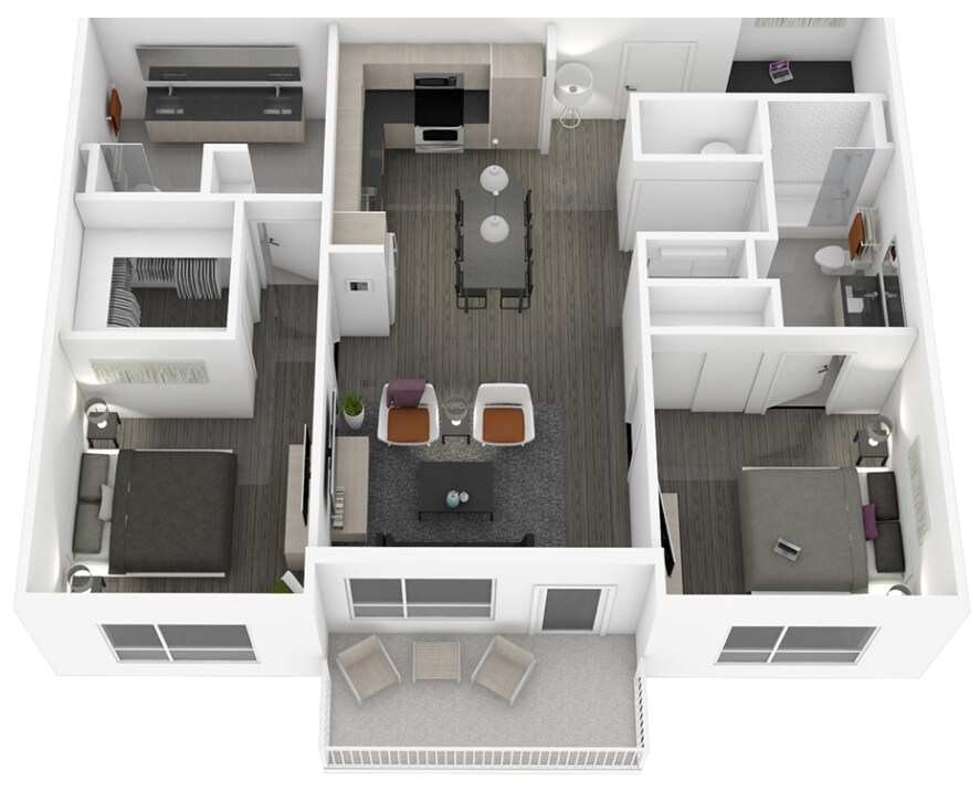2 Dormitorios, 2 Baños, 1173 pies²Disponible February 6, 2026Galería del Modelo