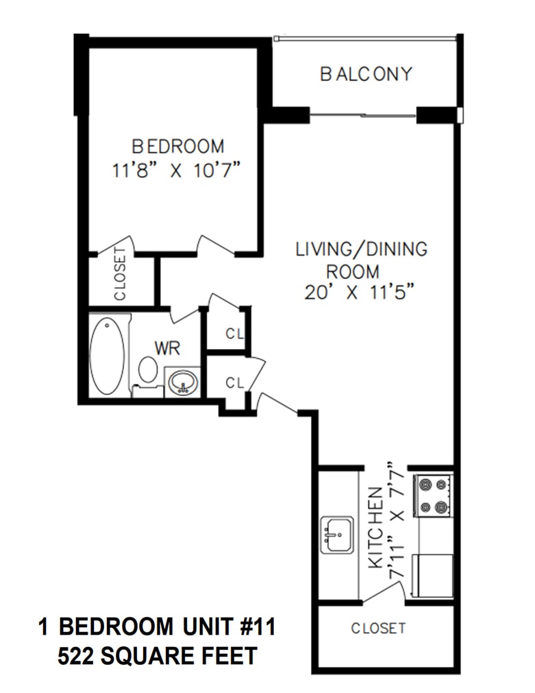 1 Dormitorio, 1 Baño, 592 pies²Disponible AhoraGalería del Modelo