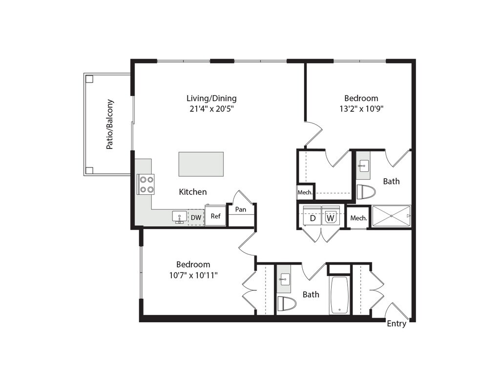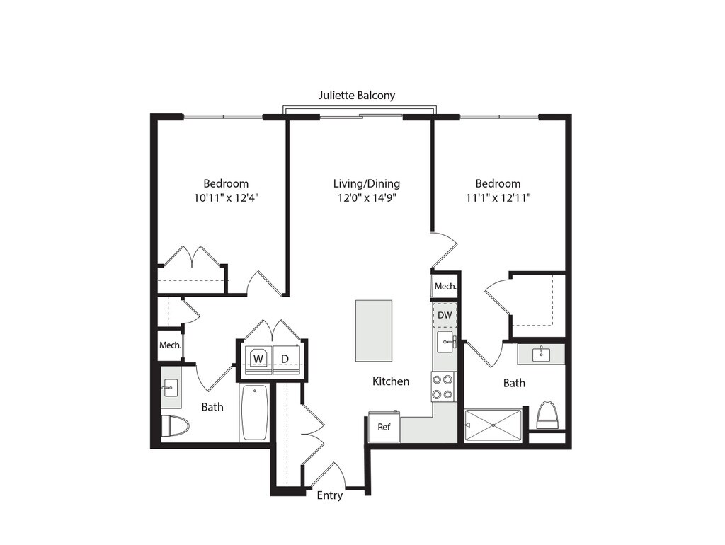 Modelo de apartamento: B1ADesde $2,5152 Dormitorios, 1 Baño, 883 sq ftDisponible Ahora![]()