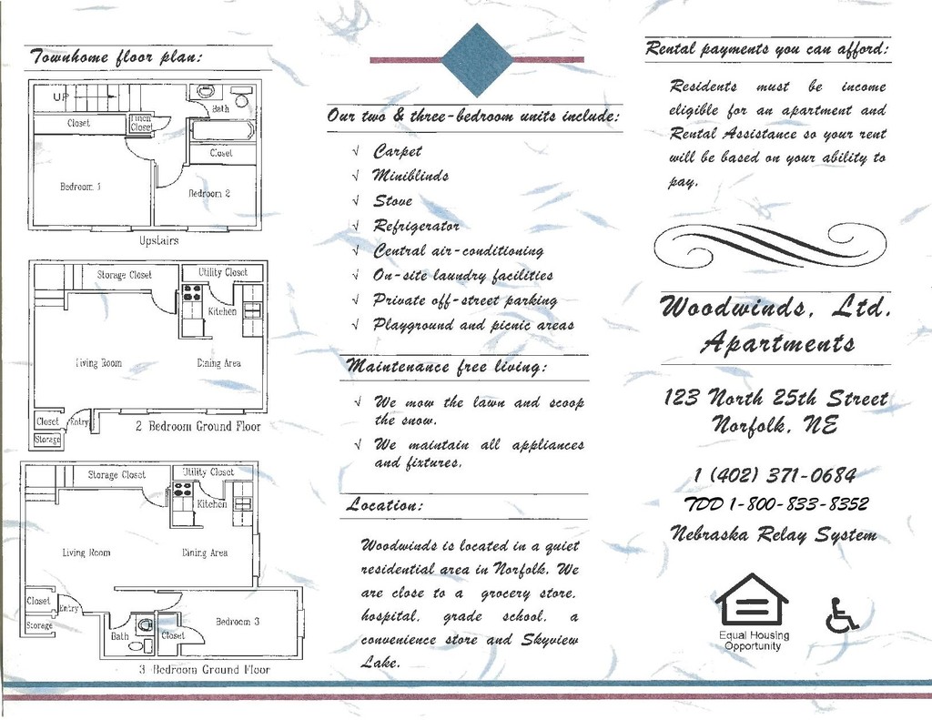 Woodwinds is ready to be your home. The location in Norfolk's 68701 area is an ideal place to move. The leasing team is waiting to show you all that this community has in store. It's time to get moving on finding your next place. Contact or stop by the Woodwinds leasing office to schedule your tour.