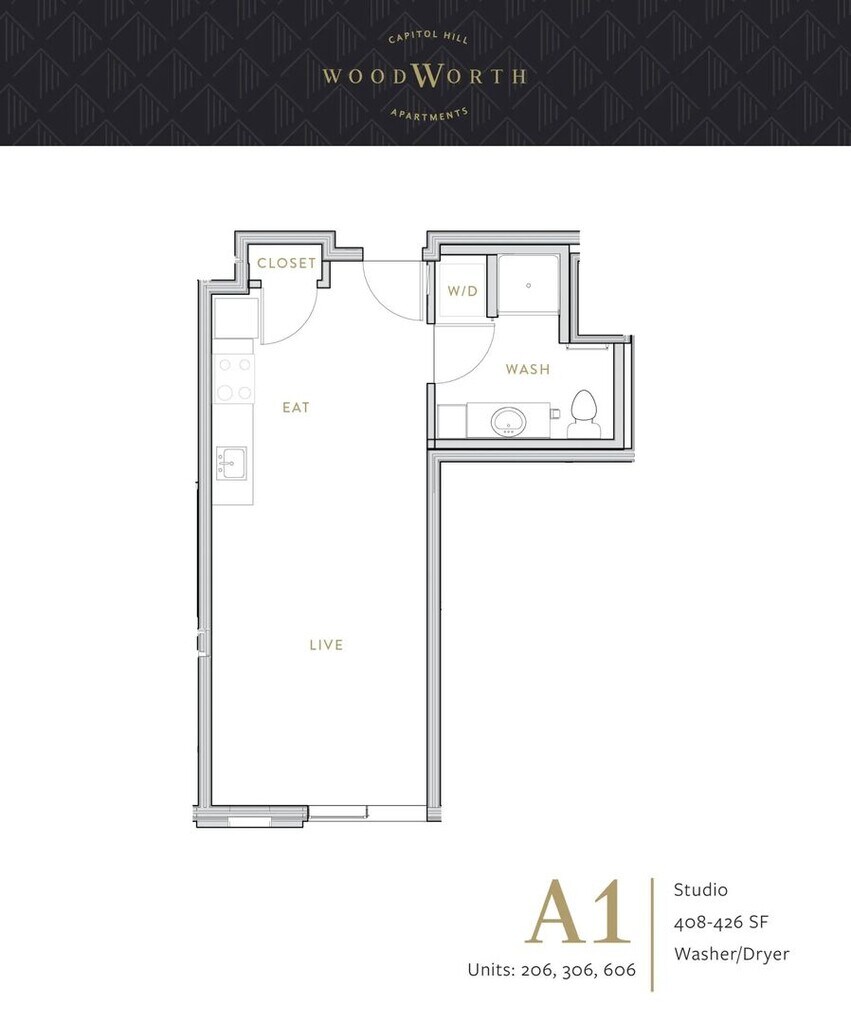 Woodworth Apartments | Vibrant & Luxurious Living in Capitol Hill ofrece apartamentos de Estudio a 1 Dormitorio desde $1,490 con 426–515 pies cuadrados. Aquí está el precio actual y la disponibilidad: