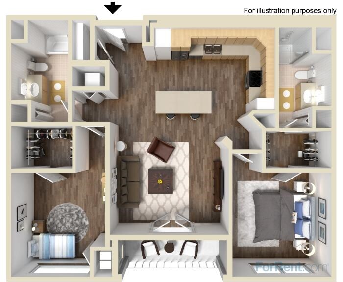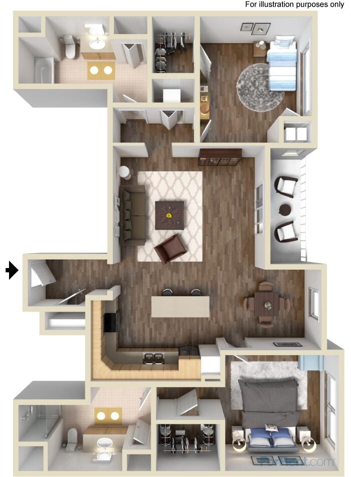 Modelo de apartamento: D3$2,7252 Dormitorios, 2 Baños, 1340 sq ftDisponible February 11, 2026PlanosFotos![]()
