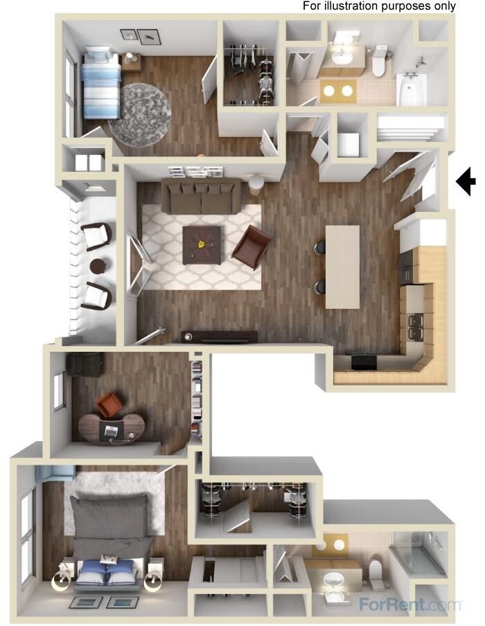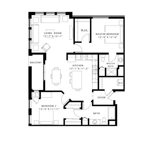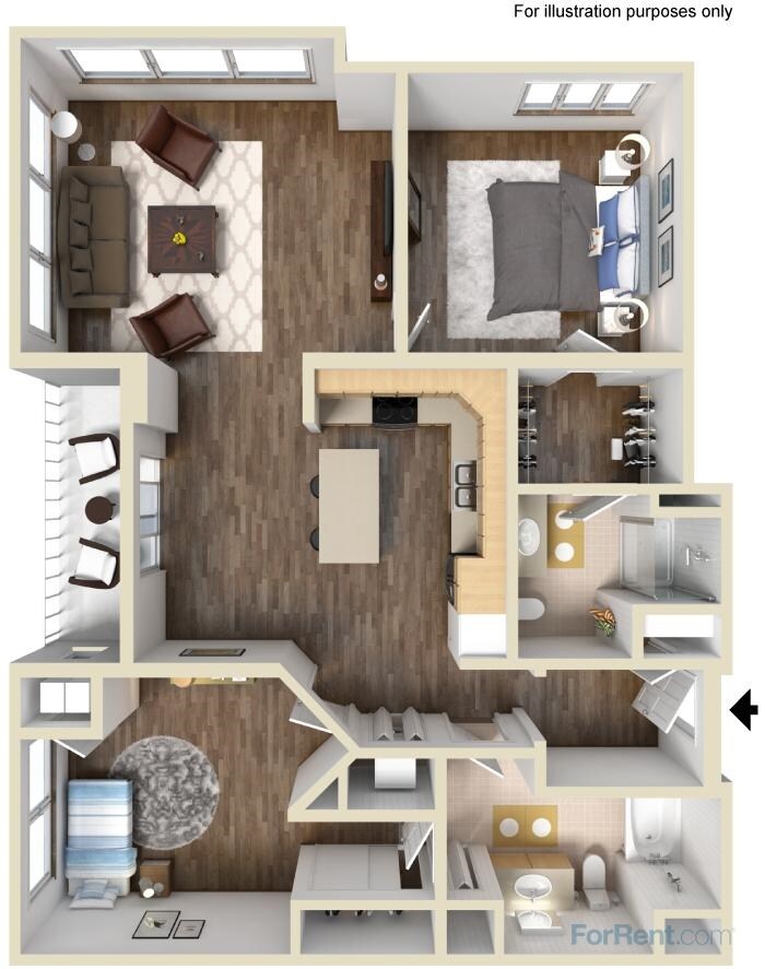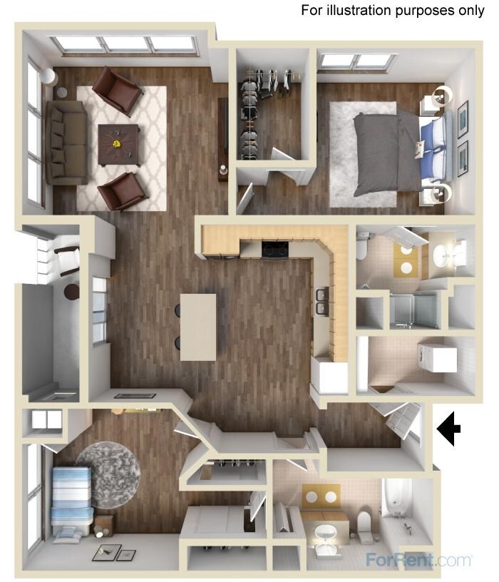 Modelo de apartamento: B2Llame para Precios1 Dormitorio, 1 Baño, 1020 sq ftNo Disponible![]()