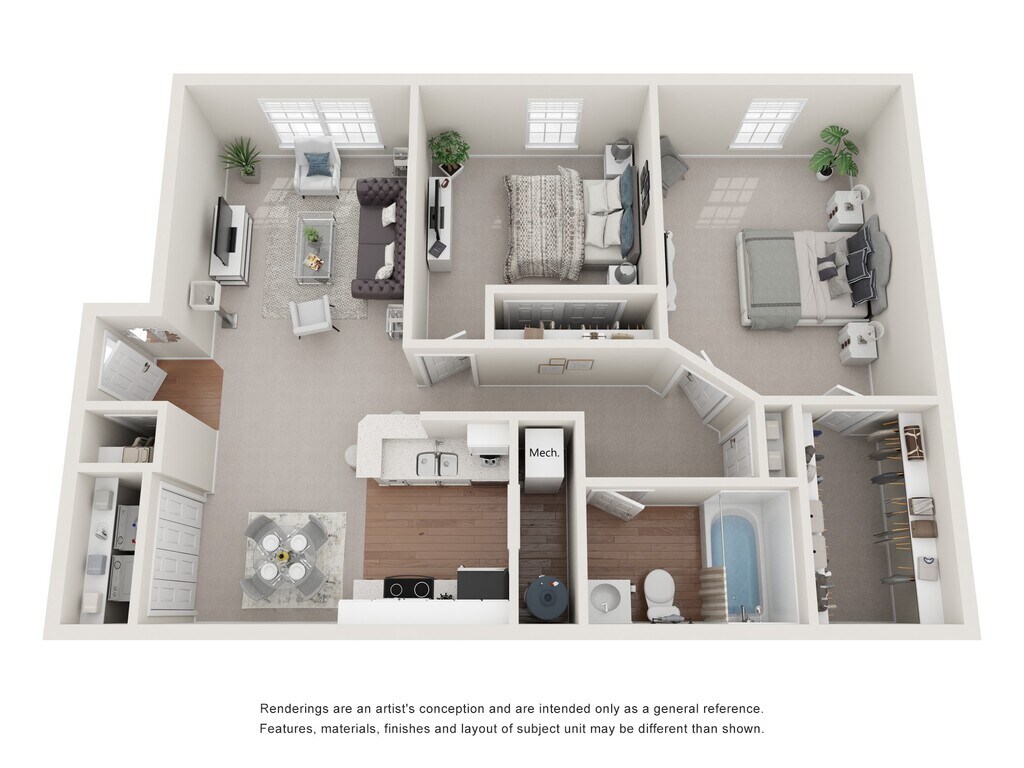 2 Dormitorios, 1 Baño, 844 pies²Disponible AhoraGalería del Modelo