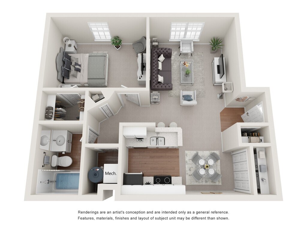 1 Dormitorio, 1 Baño, 750 pies²Disponible AhoraGalería del Modelo