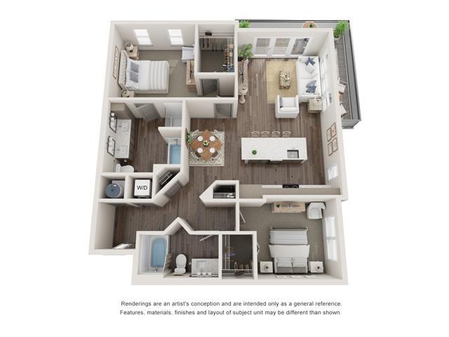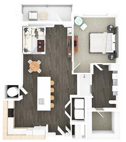 1 Dormitorio, 1 Baño, 757 pies²Disponible AhoraGalería del Modelo