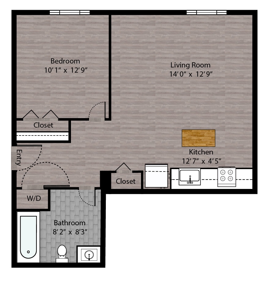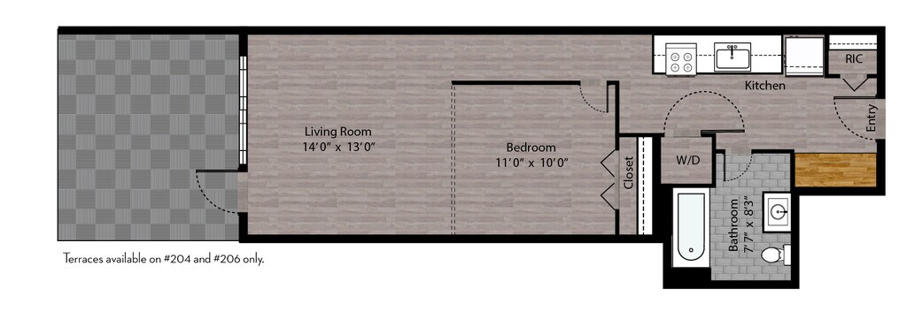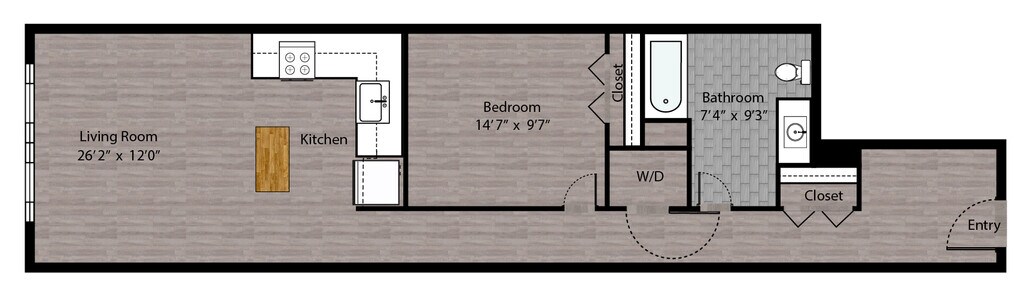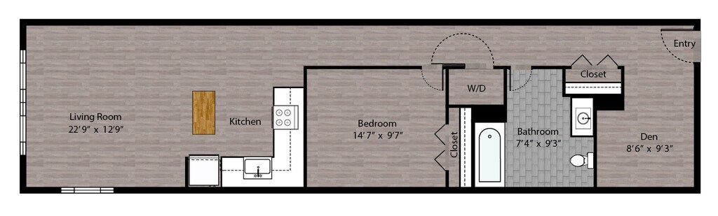 1 Dormitorio, 1 Baño, 715 pies²Disponible AhoraGalería del Modelo