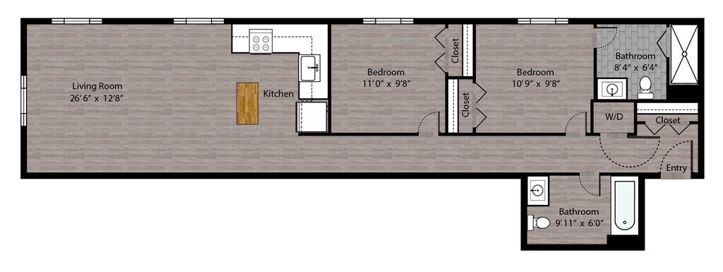 Tier 01/10 (2BR/2BA) - Plano 9 Unidad de apartamento: 510Modelo de apartamento: Tier 01/10 (2BR/2BA)2 Dormitorios, 2 Baños, 996 sq ftDisponible Ahora