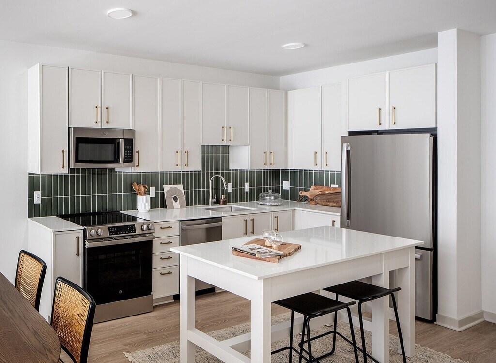 - Soft-close cabinets and under-cabinet lighting in kitchens