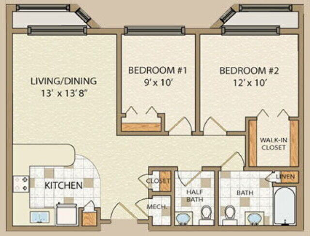2 Bedroom - Plano 1 ![]()