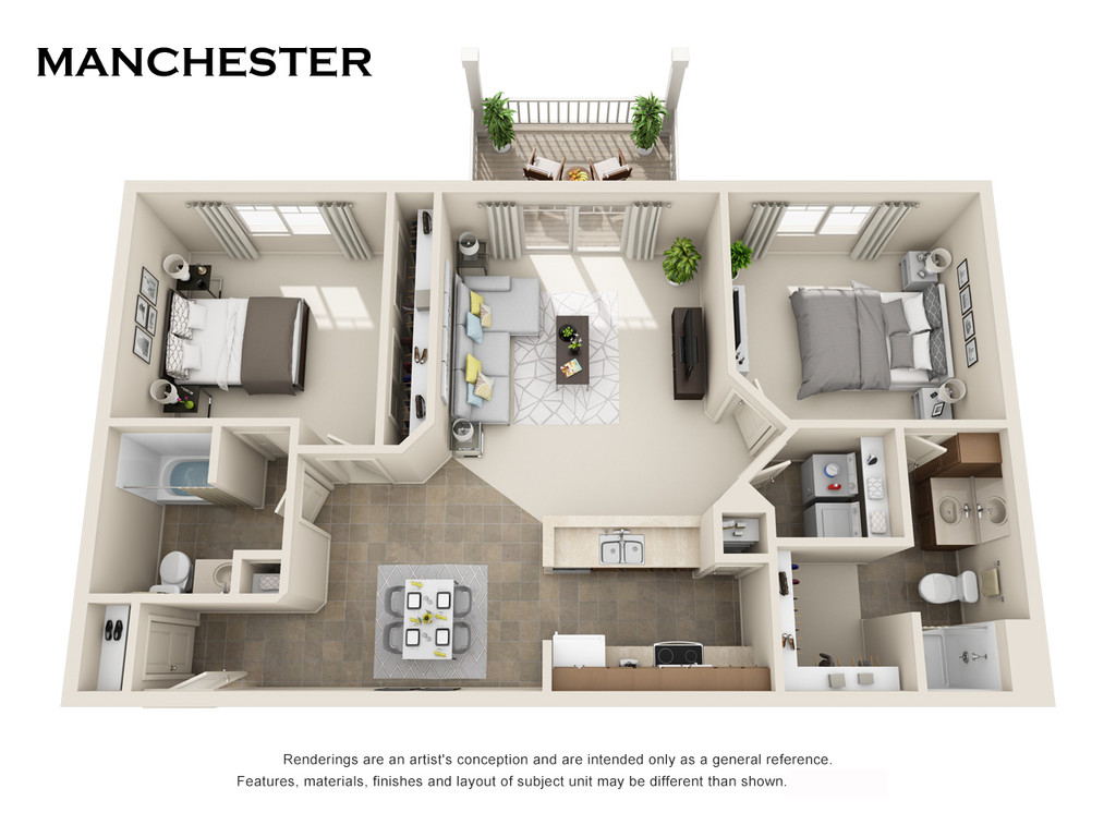 Modelo de apartamento: Manchester$1,2492 Dormitorios, 2 Baños, 1117 sq ftDisponible Ahora![]()