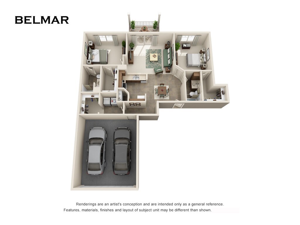 Modelo de apartamento: Belmar$1,4002 Dormitorios, 2 Baños, 1256 sq ftNo Disponible![]()