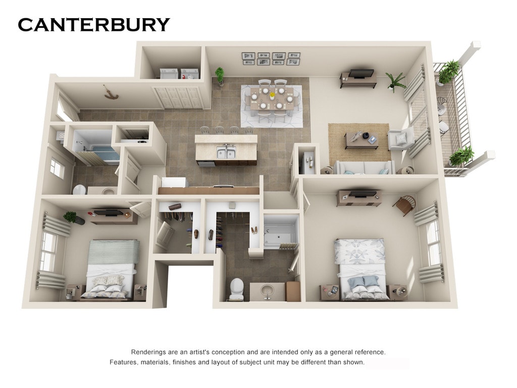 Modelo de apartamento: Canterbury$1,1992 Dormitorios, 2 Baños, 1230-1273 sq ftDisponible November 26, 2025![]()