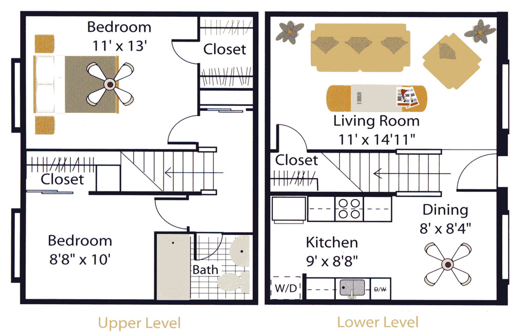 2 Dormitorios, 1 Baño, 850 pies²Disponible AhoraGalería del Modelo