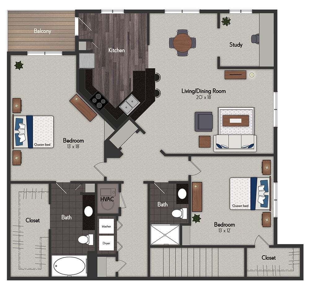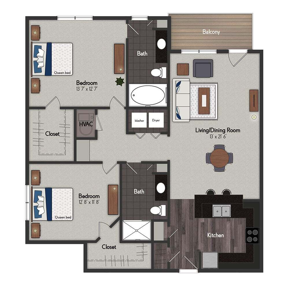 2 Dormitorios, 2 Baños, 1320 pies²El más grandeEsta opción tiene las unidades más grandes para este modeloGalería del Modelo