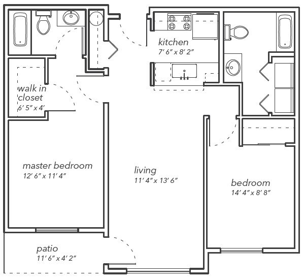 Modelo de apartamento: Two Bedroom - 1Desde $1,6252 Dormitorios, 2 Baños, 974 sq ftDisponible Ahora![]()