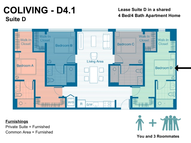 COLIVING Suites in 3 BR/3BA - 1A - Plano 4 Unidad de apartamento: X Denver 1A-1118CModelo de apartamento: COLIVING Suites in 3 BR/3BA - 1ADesde $950Estudio, 1 Baño, 389 sq ftDisponible Ahora![]()