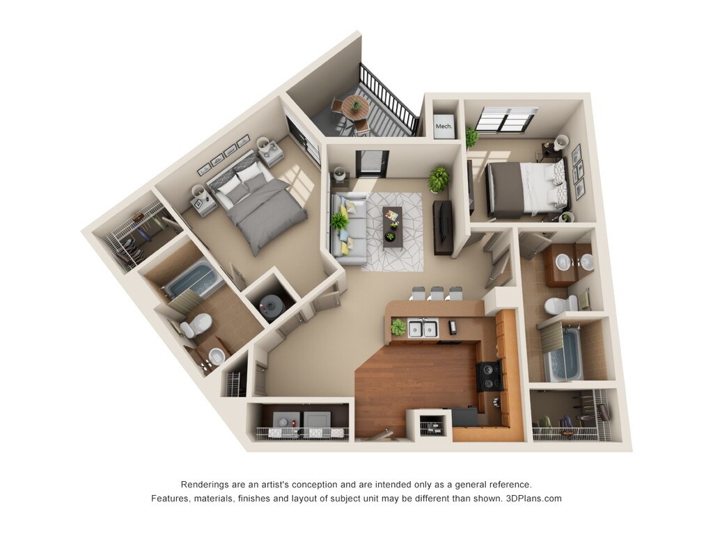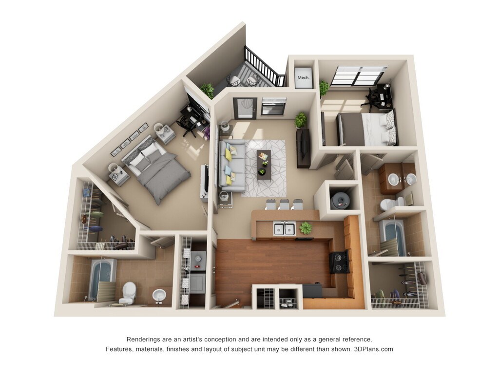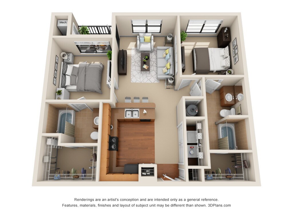 2 Dormitorios, 2 Baños, 1073 pies²El más grandeEsta opción tiene las unidades más grandes para este modeloGalería del Modelo