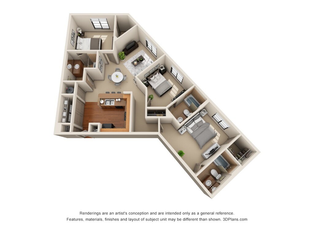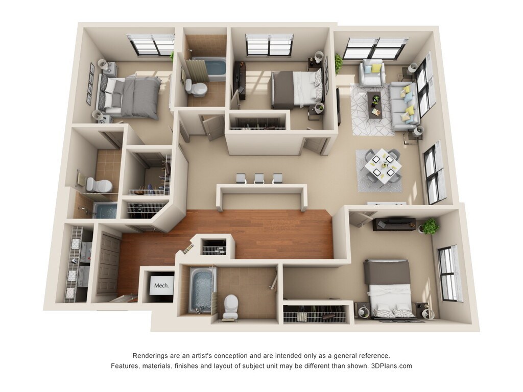 Modelo de apartamento: C1 - University3 Dormitorios, 3 Baños, 1244 sq ftNo Disponible![]()