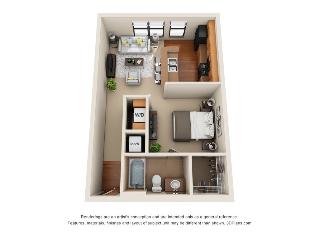 Estudio, 1 Baño, 582 pies²Galería del Modelo