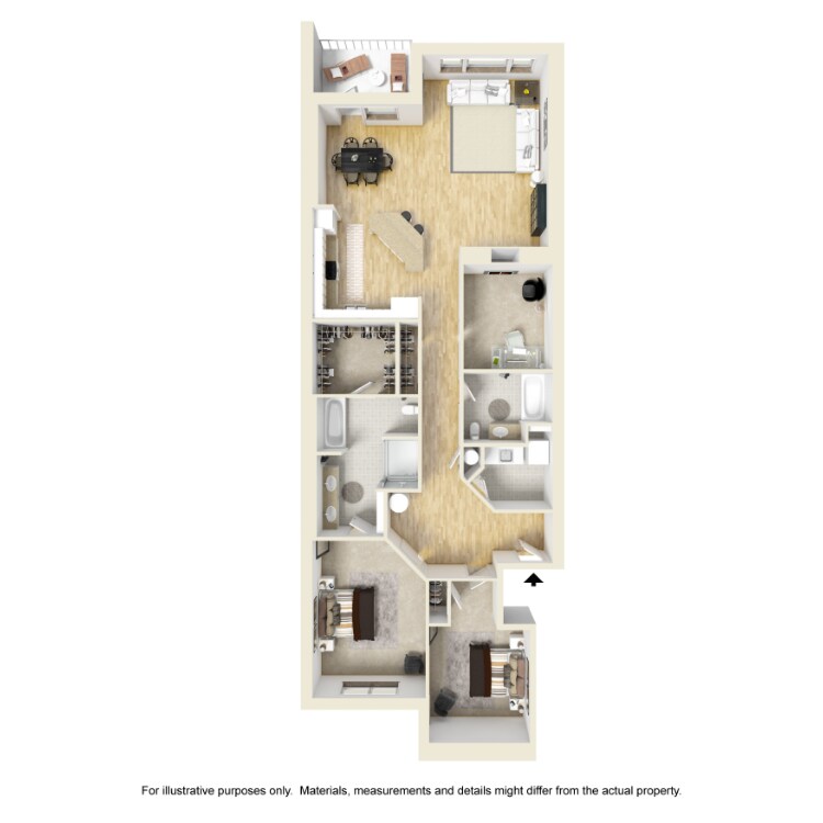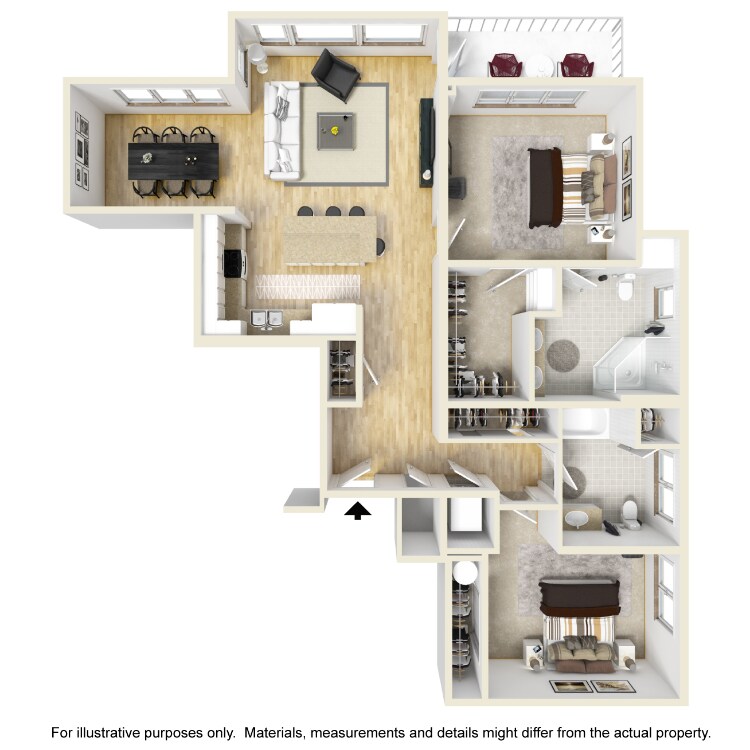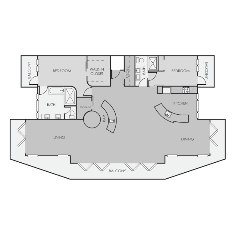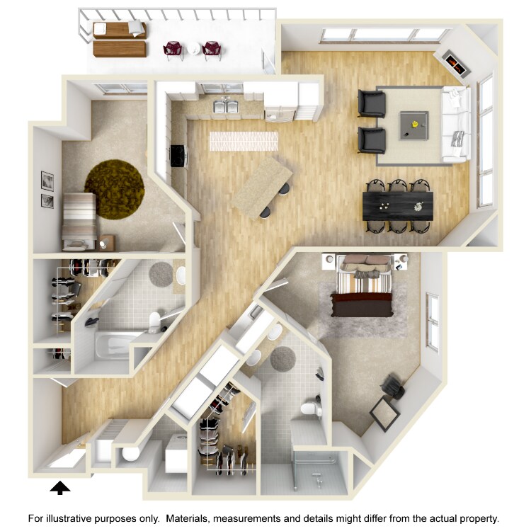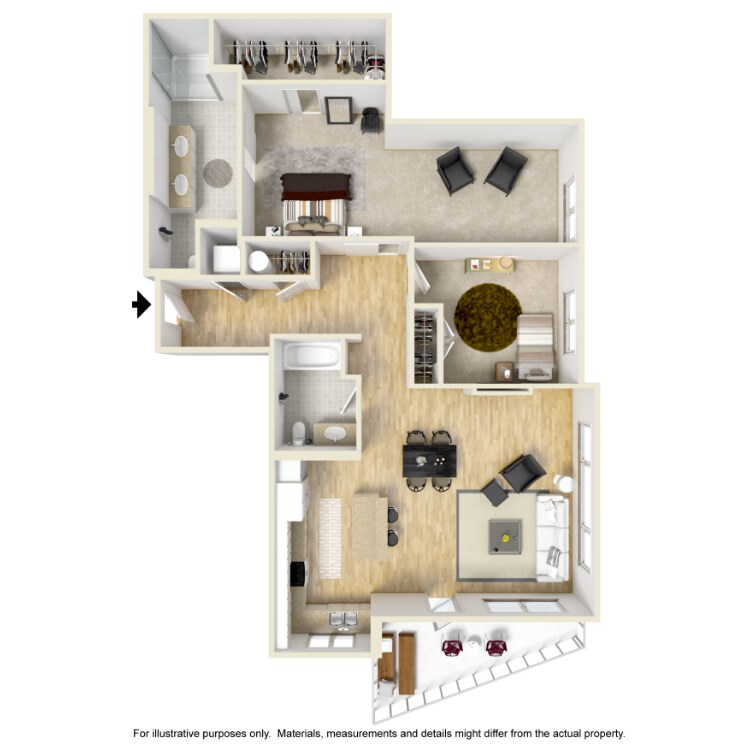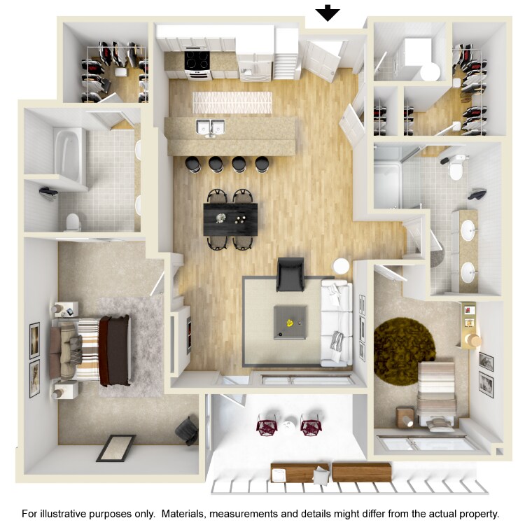 1 Dormitorio, 1 Baño, 865 pies²Disponible AhoraGalería del Modelo