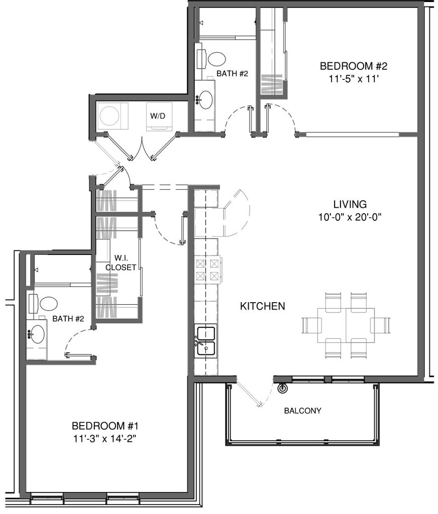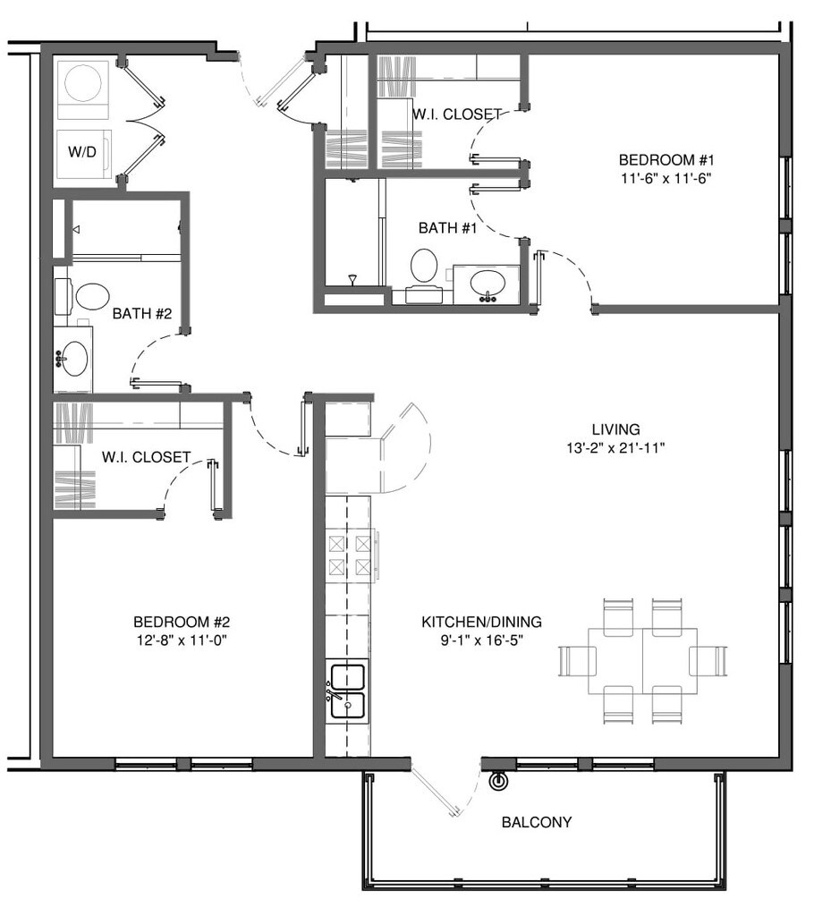 1 Dormitorio, 1 Baño, 835 pies²El más grandeEsta opción tiene las unidades más grandes para este modeloGalería del Modelo