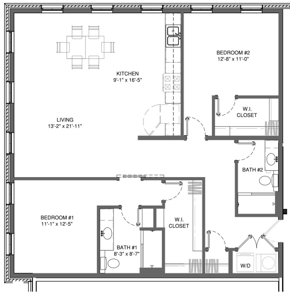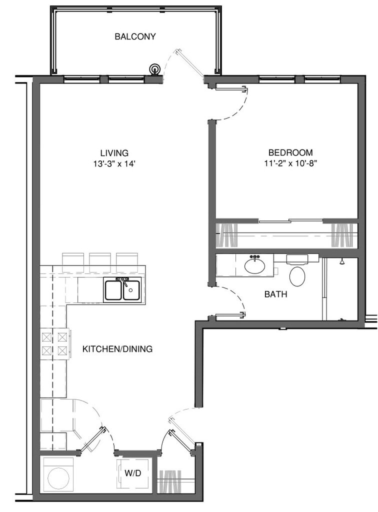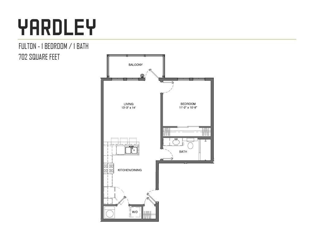 Modelo de apartamento: Fulton$1,3001 Dormitorio, 1 Baño, 702 sq ftNo Disponible![]()