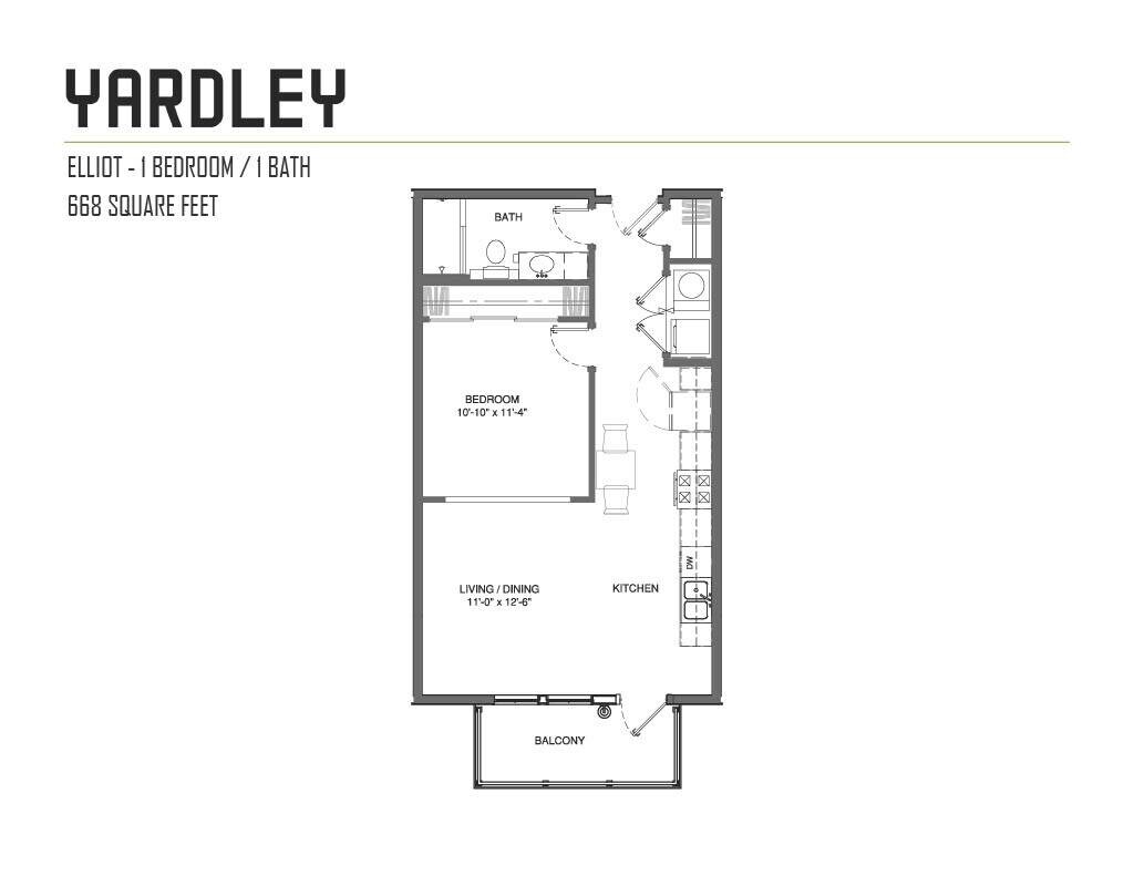 Elliot - Plano 2 Unidad de apartamento: 221PAModelo de apartamento: Elliot$1,3301 Dormitorio, 1 Baño, 668 sq ftDisponible November 21, 2025Franklin