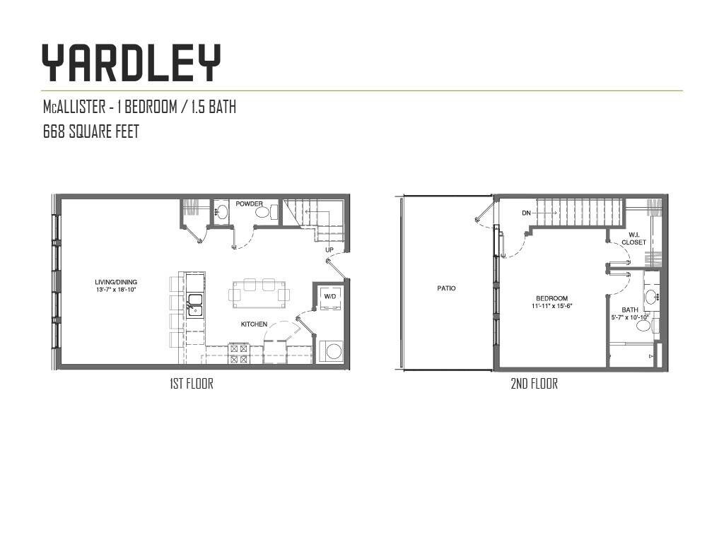 Modelo de apartamento: McAllister$1,8501 Dormitorio, 1.5 Baños, 668 sq ftNo Disponible![]()