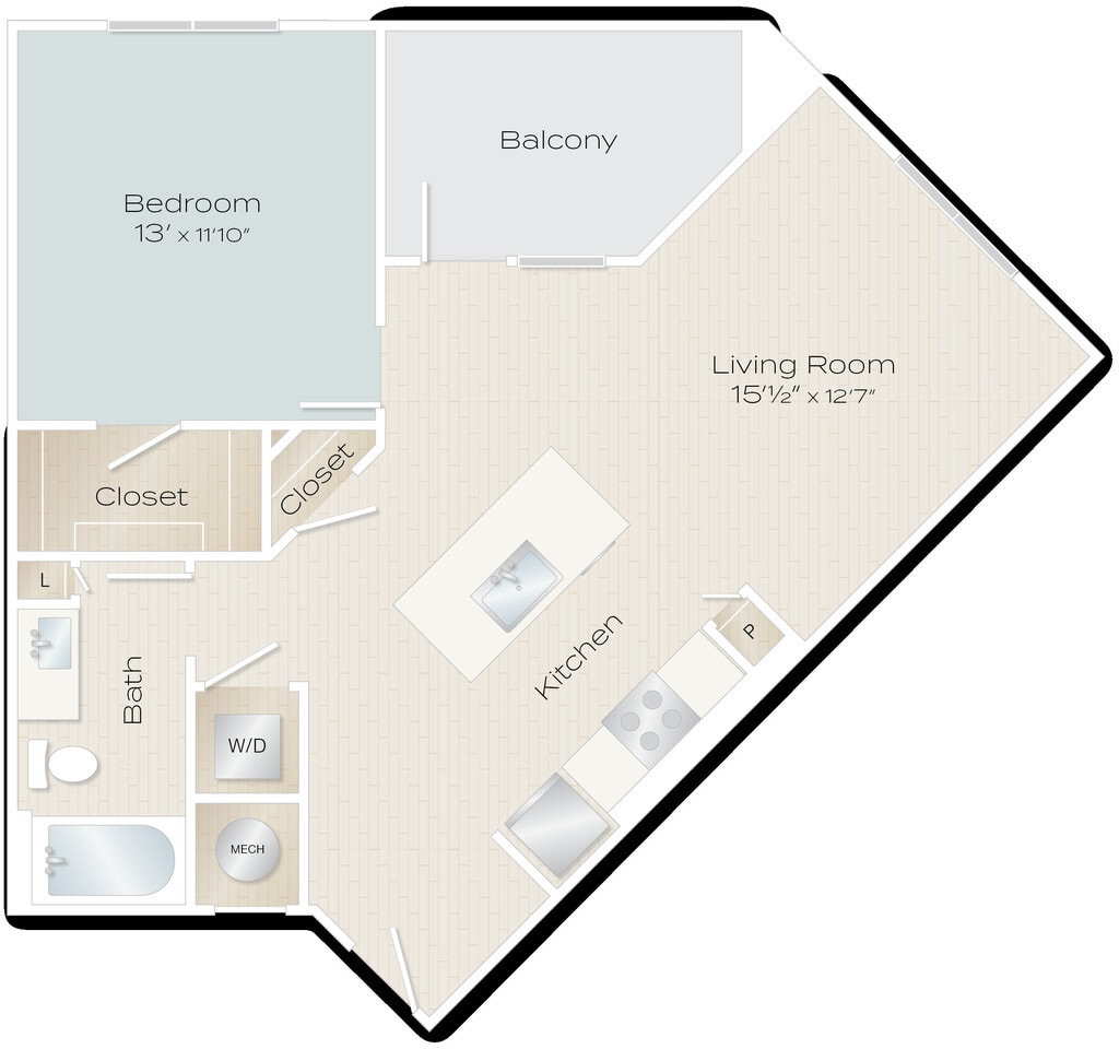 Modelo de apartamento: CaptainDesde $2,4791 Dormitorio, 1 Baño, 784 sq ftDisponible AhoraCaptain - Plano 1 Curve