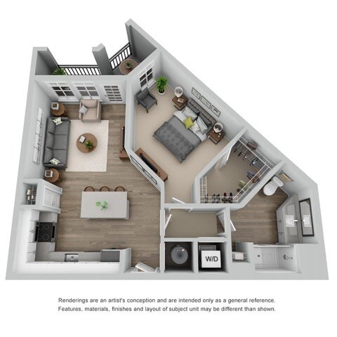 1 Dormitorio, 1 Baño, 759 pies²Galería del Modelo