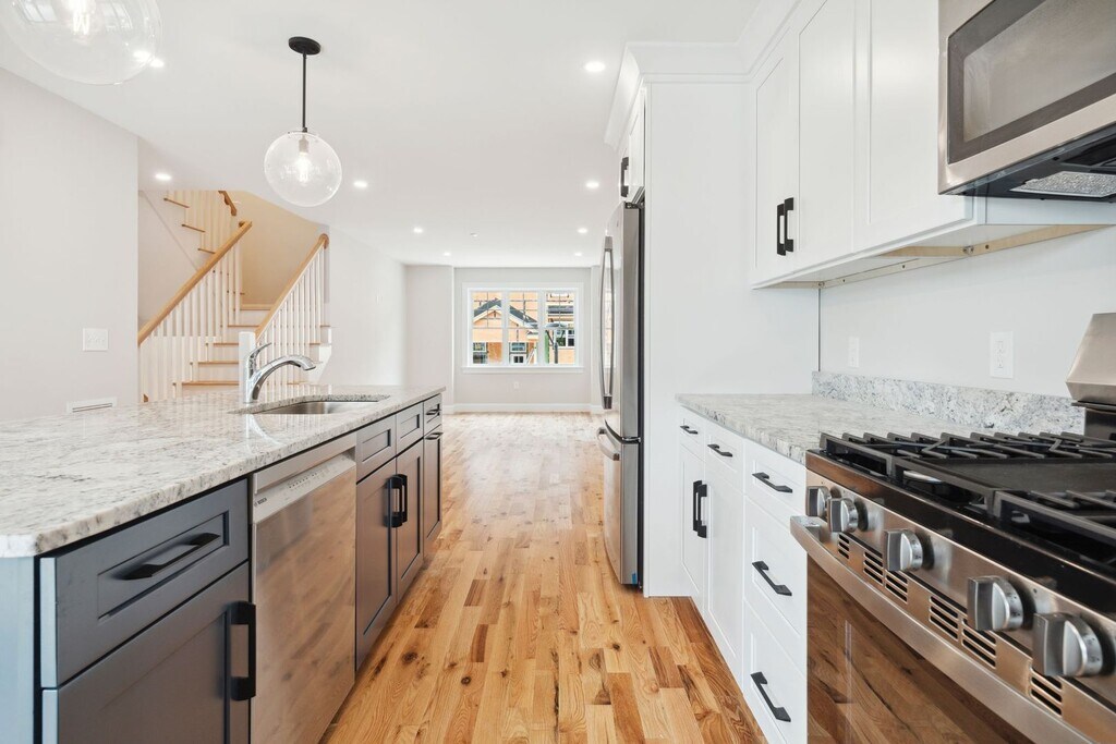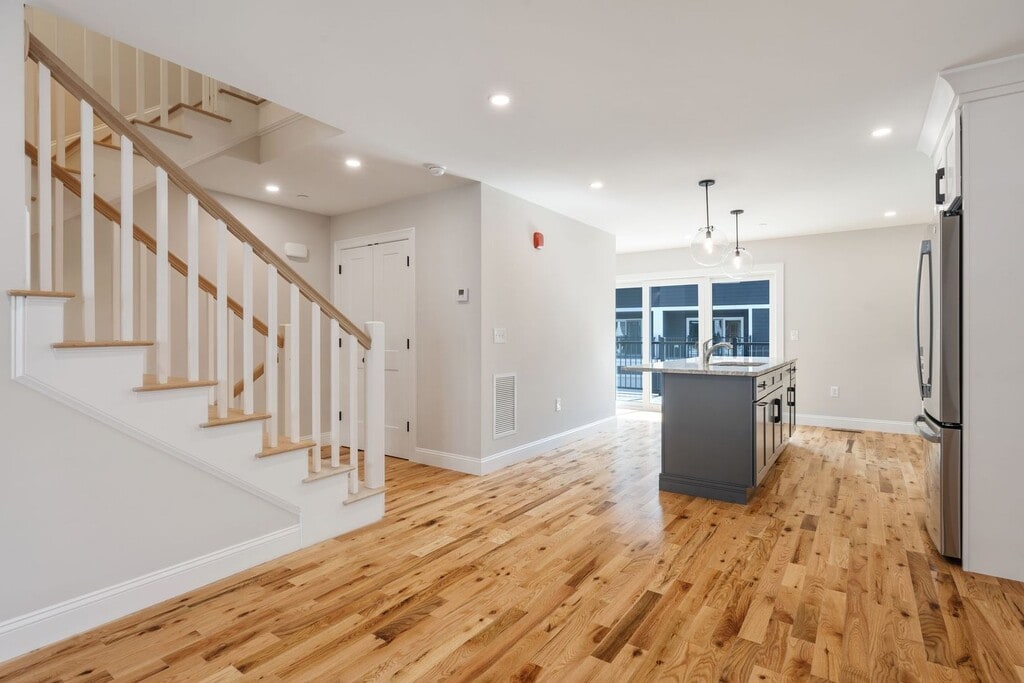 Yokens of Portsmouth is a community of 32 newly built high-end townhome apartments in a great Portsmouth location! Minutes from Downtown and the Seacoast Beaches, walkable proximity to shopping, and easy access to major routes. All townhomes at Yokens feature three floors of living space, with three bedrooms and 3-4 baths, in-unit laundry hook-ups, and two car private garages. The open flow living space on the main level features a beautiful kitchen with large island and quartz countertops, powder room half bath, and sliding glass doors to a private covered deck with outdoor storage space. The 3rd floor upper level has two spacious bedroom suites, each with their own private bath and walk-in closet, and laundry hook ups. The ground floor entry level has a two-car garage, along with an additional bedroom/office space and private 4th bath in most units. Hardwood and tile flooring throughout, central air, custom cabinetry, sparkling stone countertops, and beautiful trim work in all townhomes. Plenty of space and plenty of storage in these townhomes, which live and feel like a spacious private home! Immediate proximity to grocery stores, pharmacies, restaurants, and retail, and located just around the corner from the Urban Forestry Center trail network and in close proximity to the Boston Maine rail trail access. Major routes I-95 and Route 16 are just 5 minutes away. Less than 10 minutes to Rye Beaches. Pets allowed with approval and pet fee. Non-smoking community.