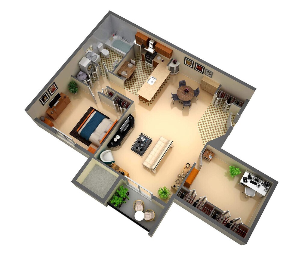 1 Dormitorio, 1 Baño, 895 pies²Disponible AhoraGalería del Modelo
