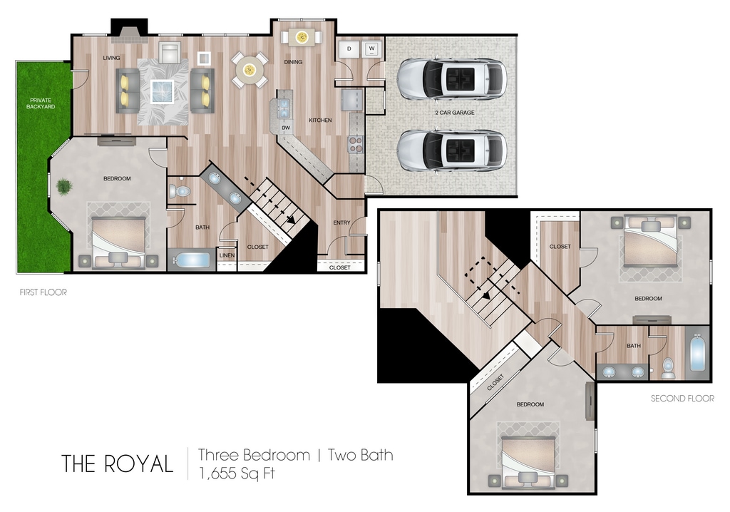 3 Dormitorios, 2 Baños, 1655 pies²Galería del Modelo