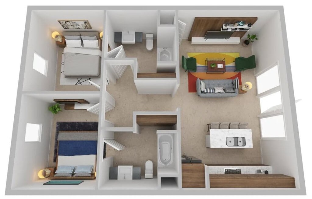 2 Dormitorios, 2 Baños, 902 pies²Disponible AhoraGalería del Modelo