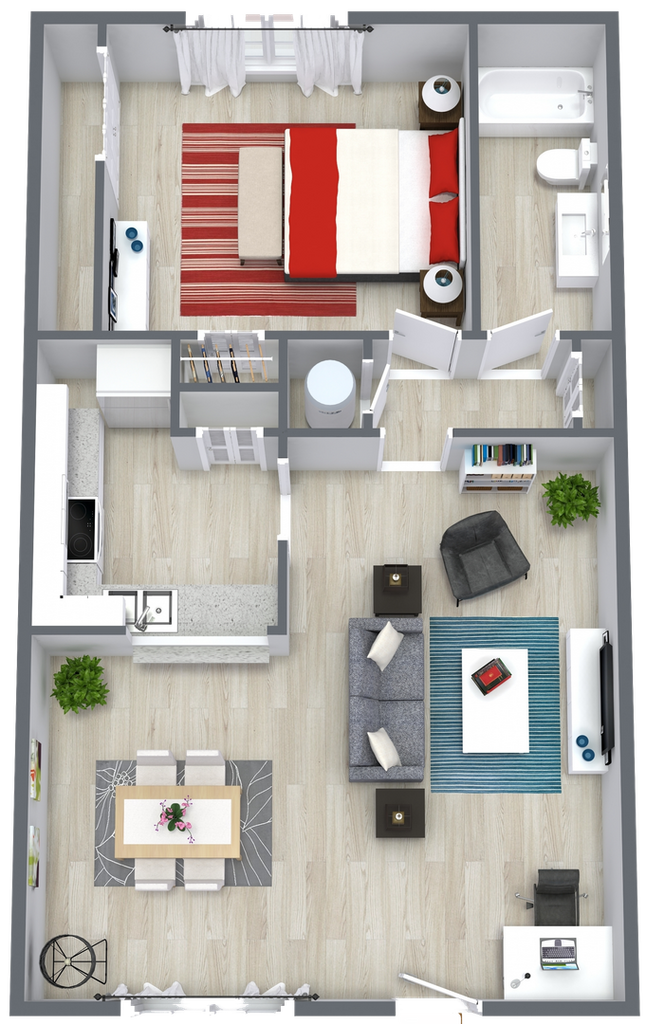 1 Dormitorio, 1 Baño, 856 pies²Disponible AhoraGalería del Modelo