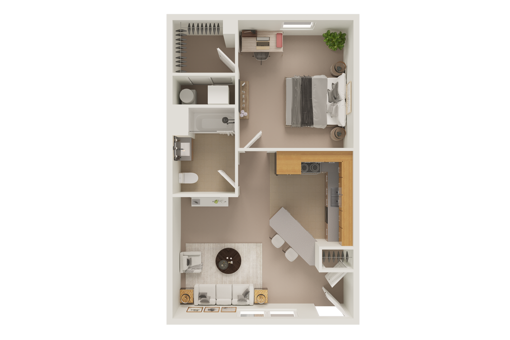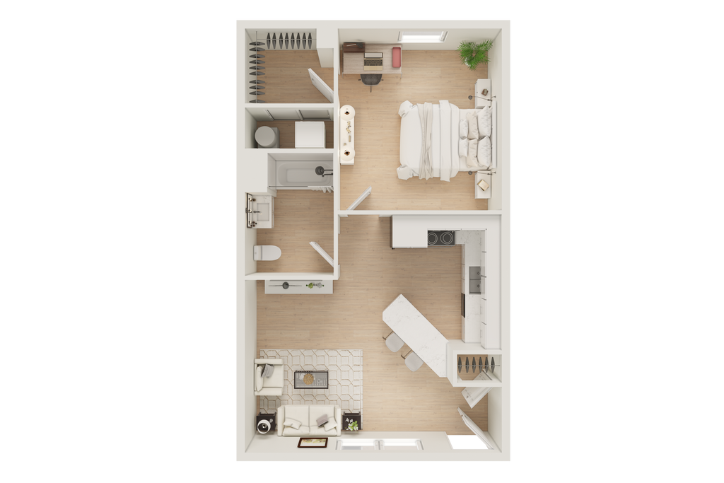 1 Dormitorio, 1 Baño, 650 pies²Disponible August 15, 2026Galería del Modelo