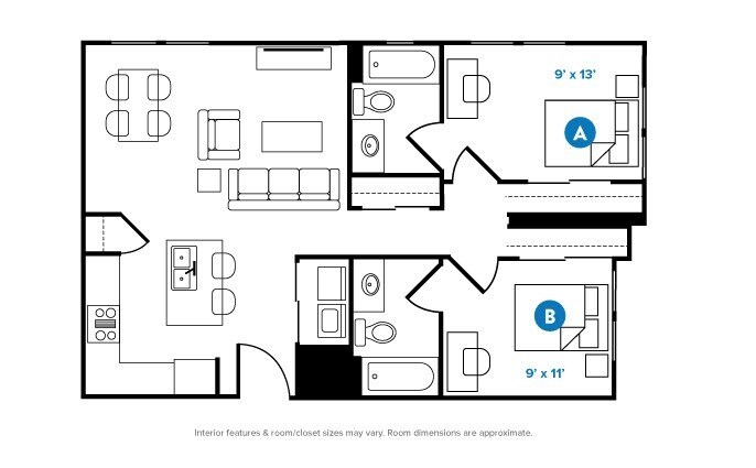 2 Bed, 2 Bath Standard - Plano 1 Unidad de apartamento: Private BedroomModelo de apartamento: 2 Bed, 2 Bath Standard$9192 Dormitorios, 2 Baños, 1029 sq ftDisponible August 13, 20264 Dormitorios