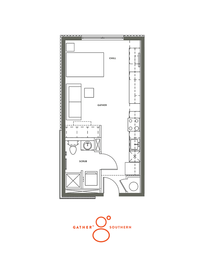 Studio - Plano 1 Unidad de apartamento: Private BedroomModelo de apartamento: Studio$1,199Estudio, 1 Baño, 825 sq ftDisponible August 18, 20261 Dormitorio