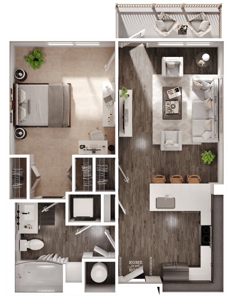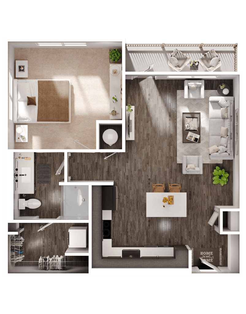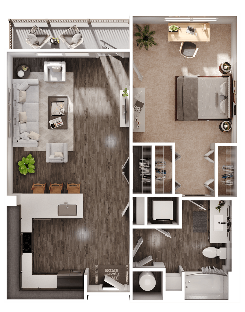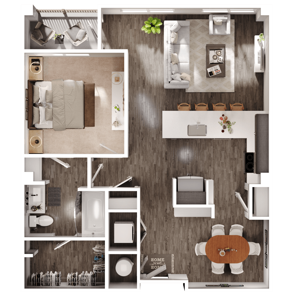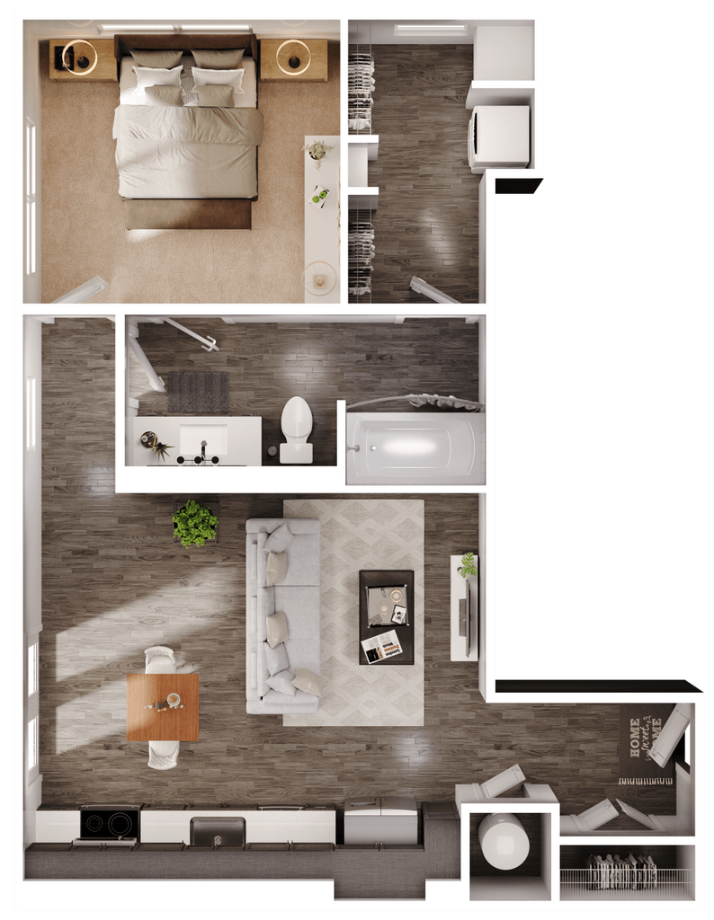 1 Dormitorio, 1 Baño, 727 pies²Disponible AhoraGalería del Modelo